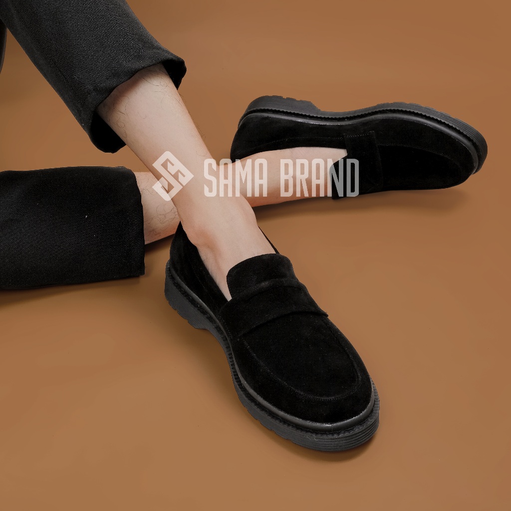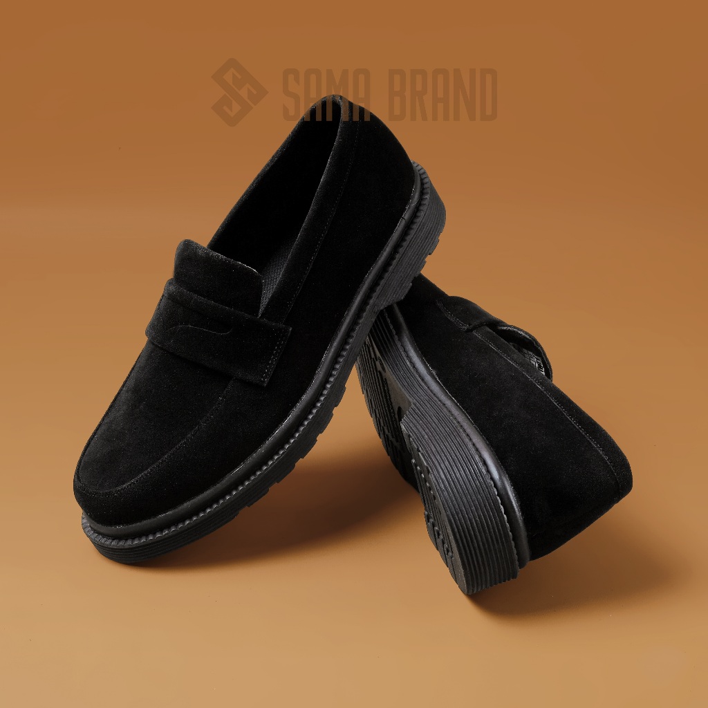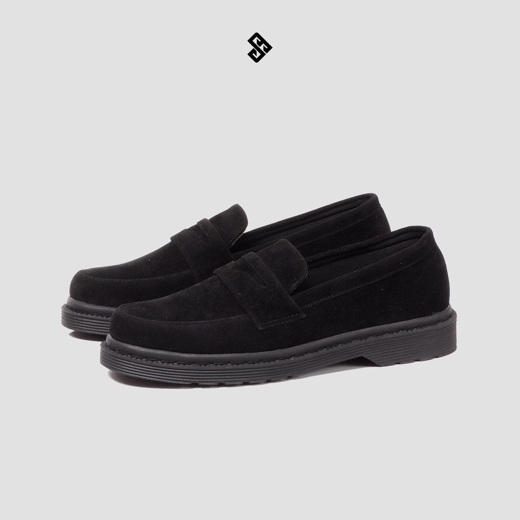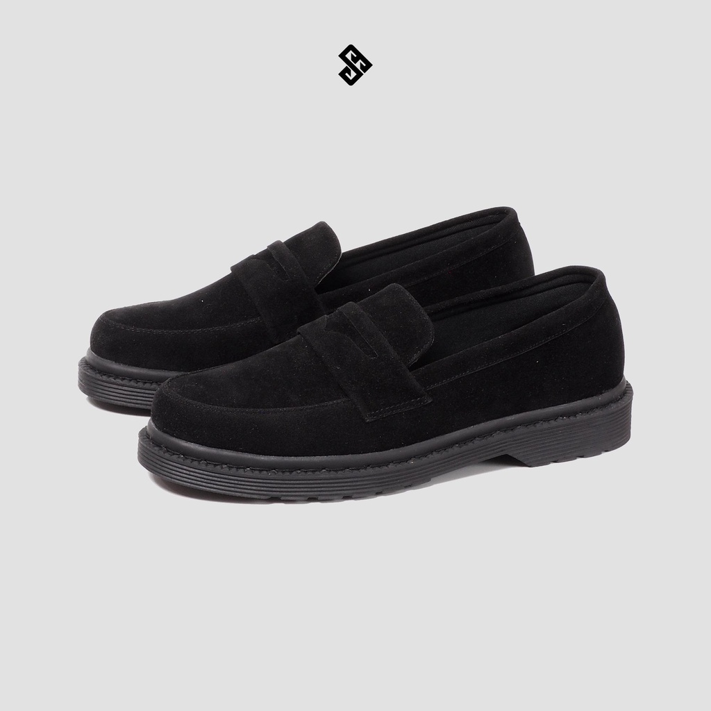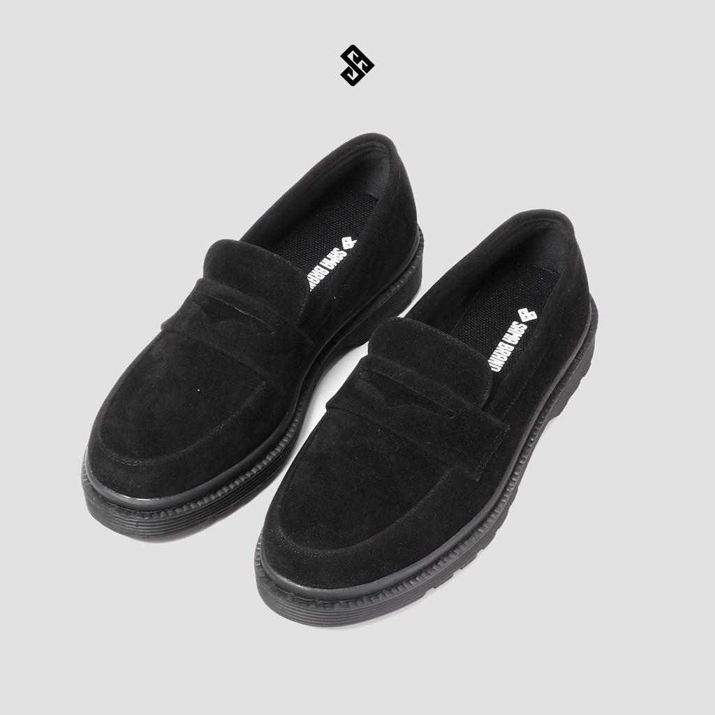 AIDEN SUEDE BLACK - Sepatu Pria Slip On Loafers Formal Karet Flat Shoes docmart polos