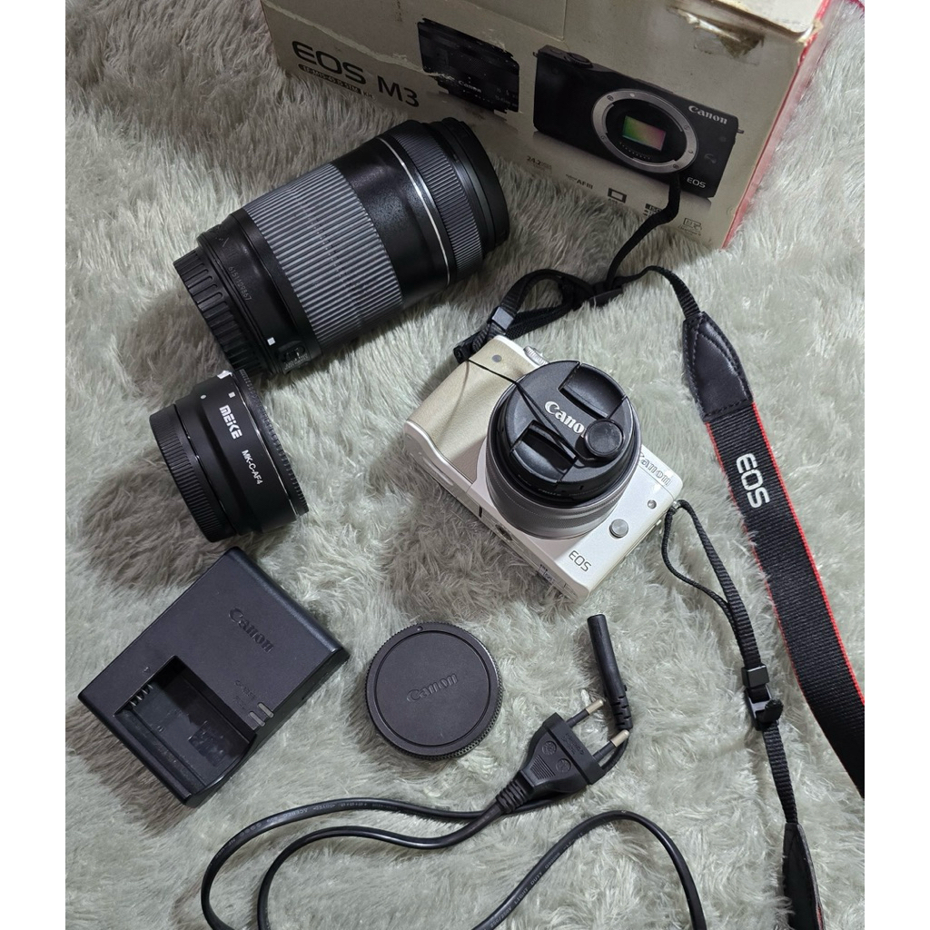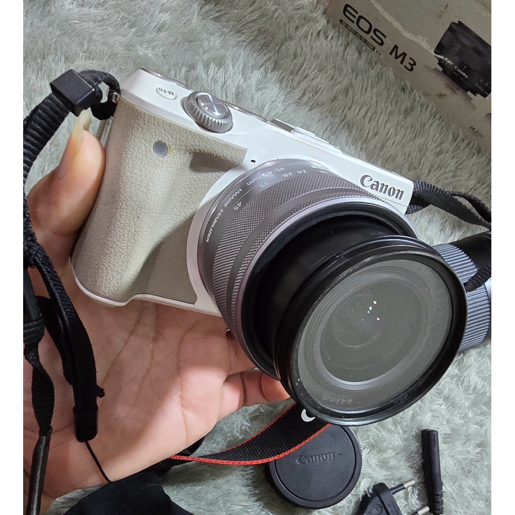Kamera second Canon EOS M3 Lensa Kit & Lensa Tele Canon Efs 55-250mm IS STM camera digicam slr mirrorless