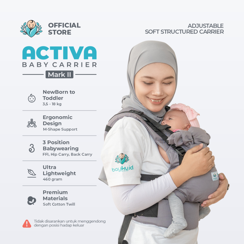 BAYIKU.ID Activa Mark 2 Grey Gendongan Bayi M Shape SSC Adjustable Newborn - Toddler