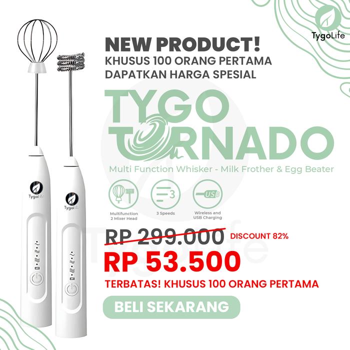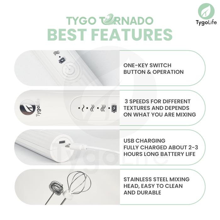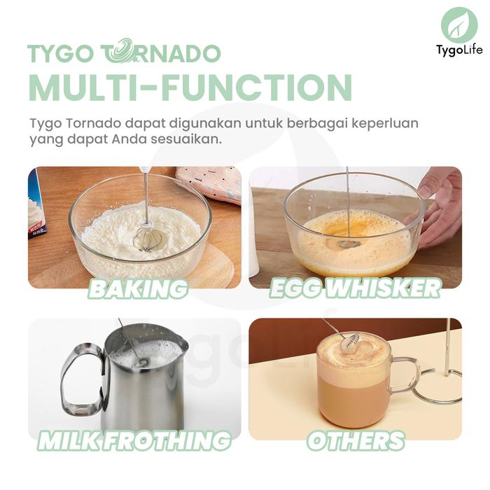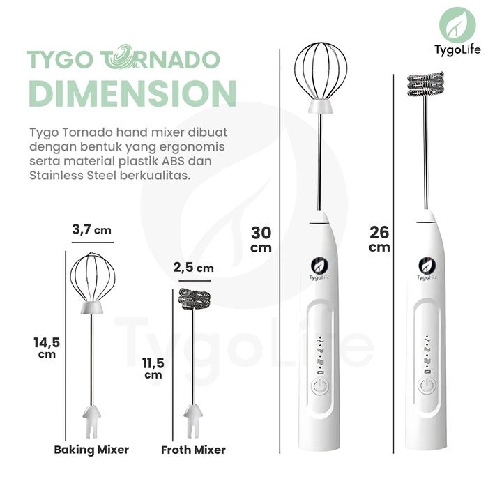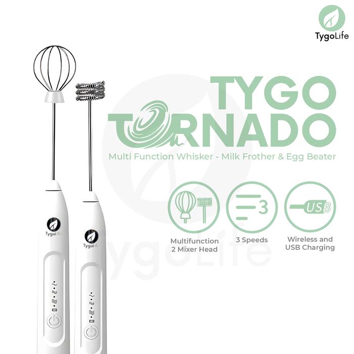 TYGO TORNADO 2IN1 MILK FROTHER EGG BEATER HAND MIXER PENGOCOK TELUR SUSU KOPI DALGONA MINUMAN RECHARGEABLE USB CHARGE CAS ELEKTRIK PORTABLE WHISKER - WHITE