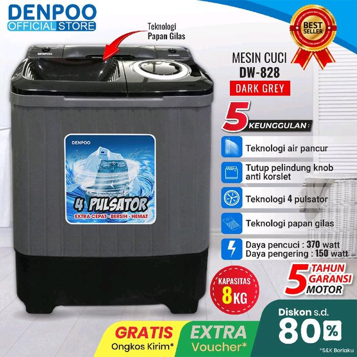 DENPOO MESIN CUCI 2 TABUNG DW 828 HEMAT LISTRIK - PUTIH