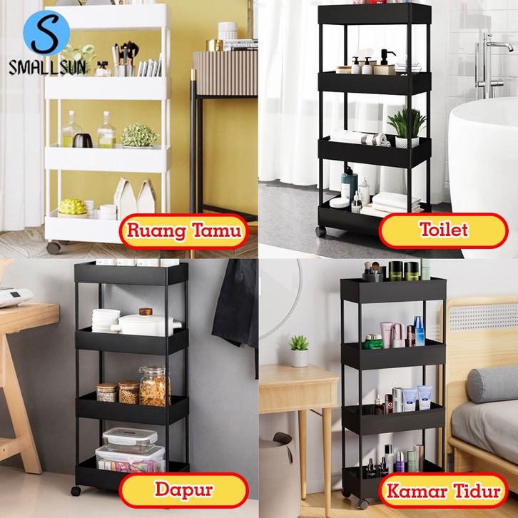 SS Rak Susun Serbaguna 4 Tingkat Dengan Rod Rak Kamar Mandi Bahan Plastik Portable Rak Dapur Square BY ORIGINAL PRODUCT