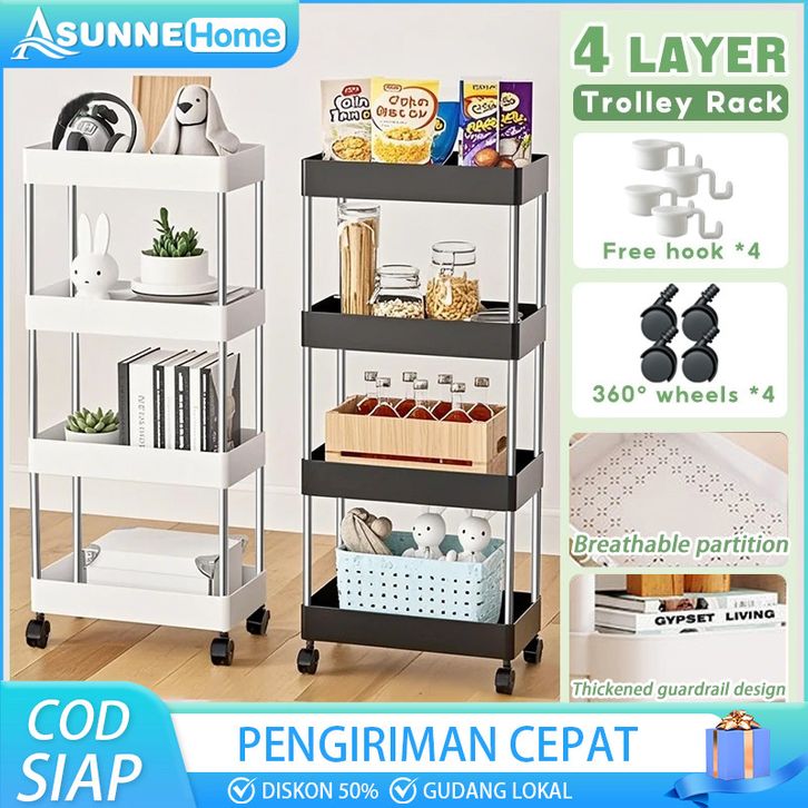 Asunne 3/4 Layers Bathroom Organizer Trolley Cart Kitchen Storage Shelf Home Bedroom Organizer BY ORIGINAL PRODUCT