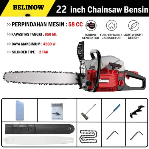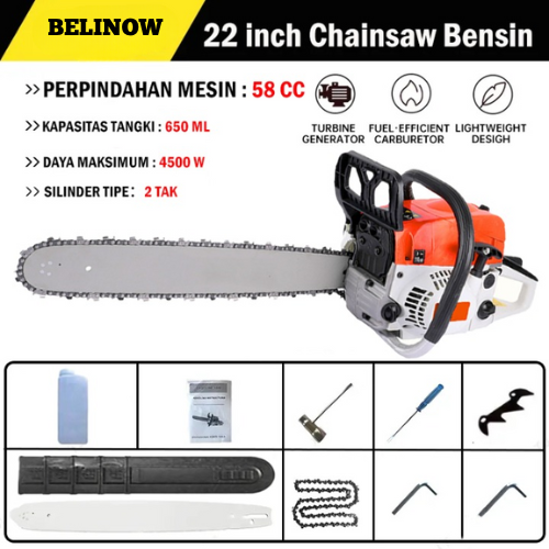 [Star+]MESIN GERGAJI KAYU CHAINSAW 58CC 20 INCH – MESIN POTONG KAYU 2 TAK