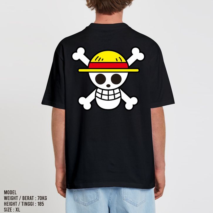 KRMK Kaos T Shirt Baju Distro Unisex Gambar Anime One Piece LUFFY LOGO JOLLY ROGER HUT RI INDONESIA BY ORIGINAL PRODUCT
