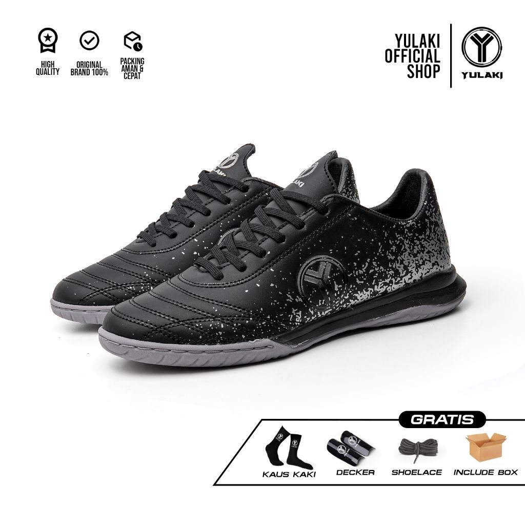 YULAKI FOOTWEAR - Sepatu Futsal Abstract Black Silver In FG Limited Edition Ringan Dan Fleksibel Gratis