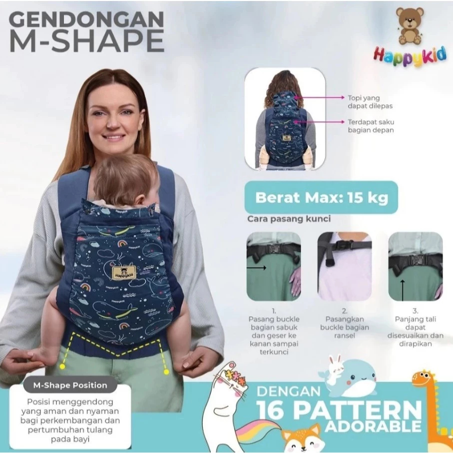 Gendongan Ransel Bayi M Shape Happy Kid | Gendongan Depan Bayi