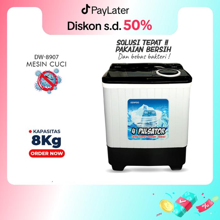 MESIN CUCI 2 TABUNG DENPOO DW 8907 B BIG PULSATOR - 8KG PENGERING - DW 8907