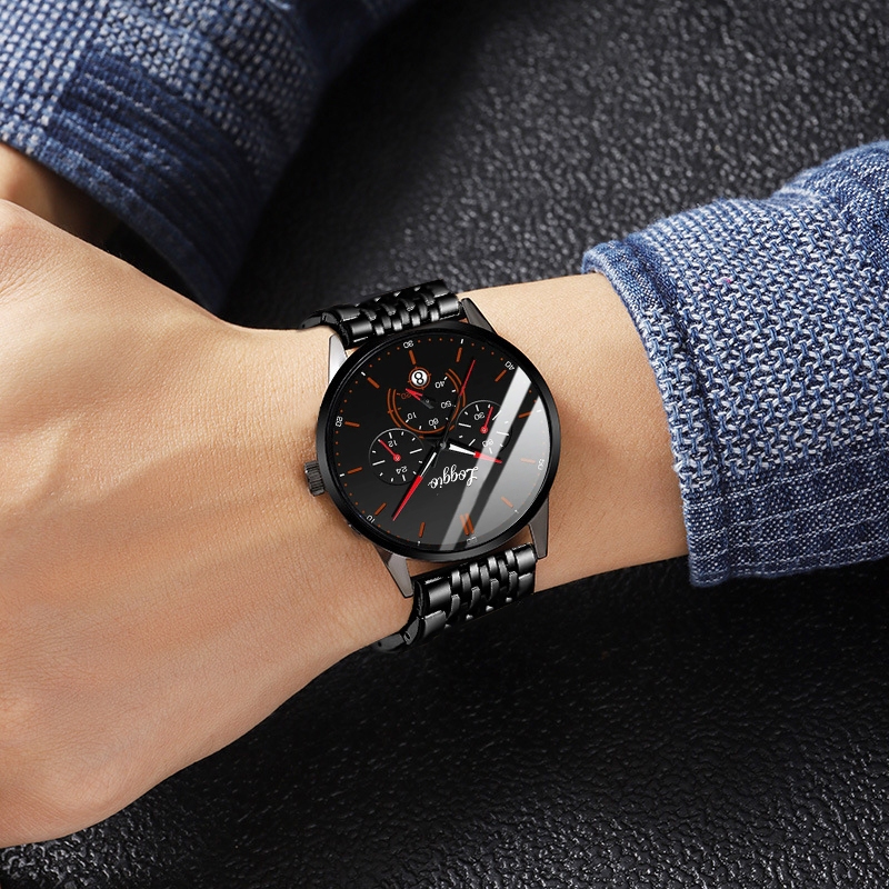 Loggio Jam Tangan Pria Original Display Kuarsa Cahaya malam Anti Air Tali Stainless Steel Santai Mode Jam Tangan Cowok