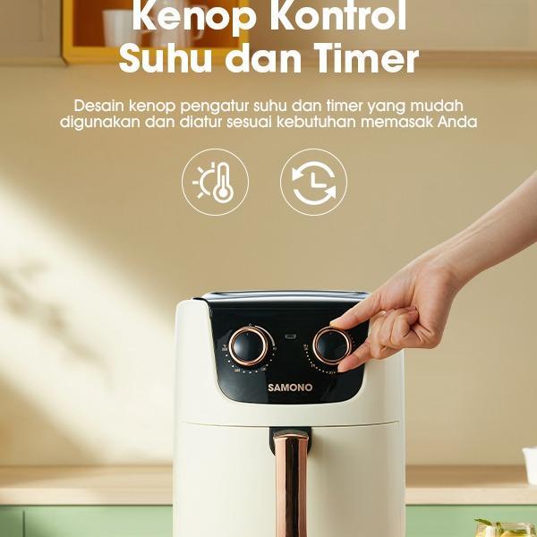 (EKSKLUSIF INDY ISCHA) SAMONO 650 WATT AIR FRYER MESIN 4L PENGGORENGAN TANPA MINYAK KONTROL SUHU GANDA [SW-AFW04] - SW-AFW04