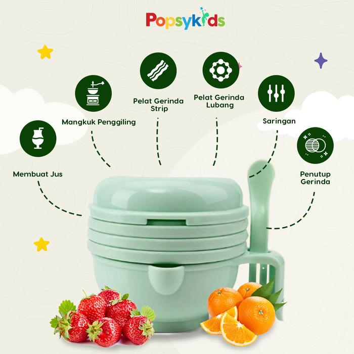 POPSYKIDS BABY GRINDING BOWL MPASI FOOD MAKER ALAT PEMBUAT MAKANAN MPASI BAYI - BIRU