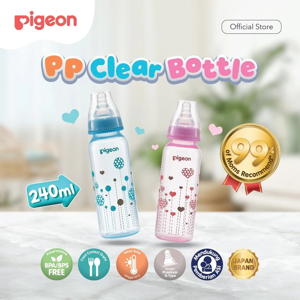 PIGEON Botol Susu PP Clear RP 120ml/240ml w/S-Type Nipple | Pilih Variasi | Botol Susu Bayi | Slim Neck | Anti Kolik | N