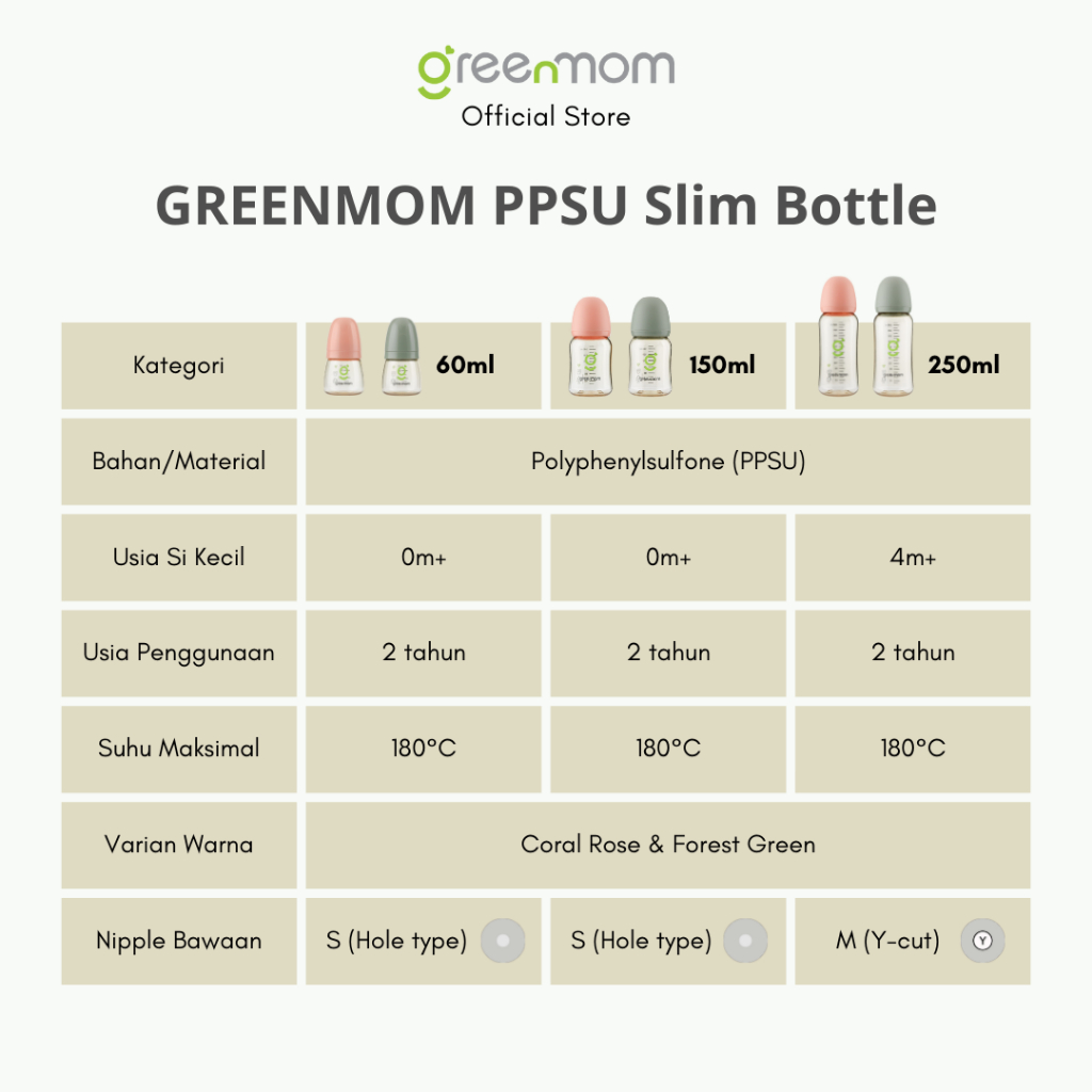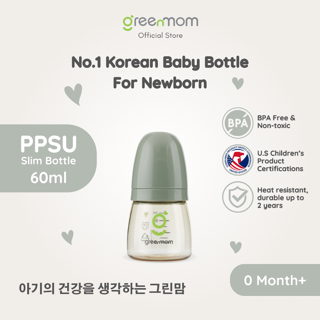 Greenmom PPSU Slim 60ml Forest Green / Botol Paling Aman - Bebas Mikroplastik / Anti-kolik / Brand Korea