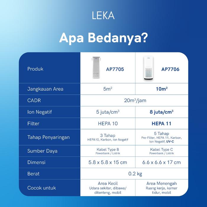 LEKA AP7705 PORTABLE AIR PURIFIER - MINI HEPA FILTER ION NEGATIF ANION - BUNDLE FILTER