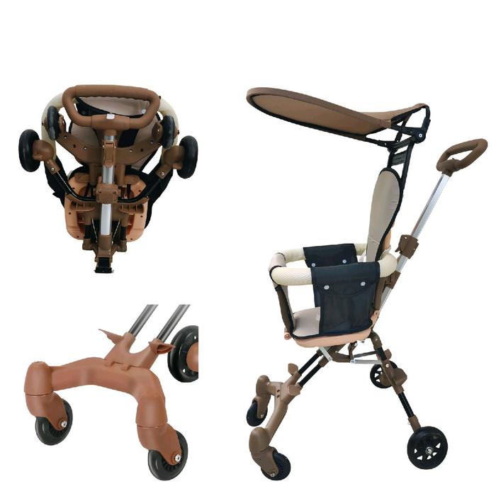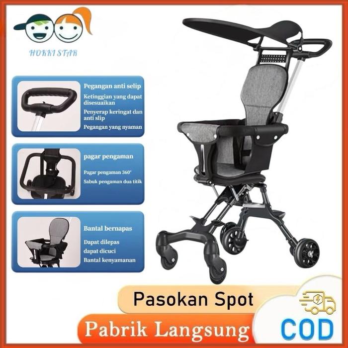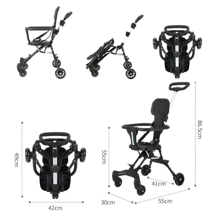 STROLLER BABY DUA ARAH TRAVEL MULTIFUNGSI STROLLER BABY RODA EMPAT BISA DUA ARAH PERLENGKAPAN TRAVELING BABY BAYI - HITAM ALAS ABU