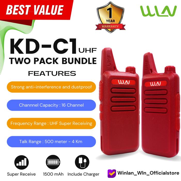 WLN WINLAN HT WALKIE TALKIE KD-C1 UHF ( 2PCS ) TAMPA CHARGER DEKSTOP - HITAM