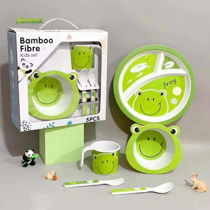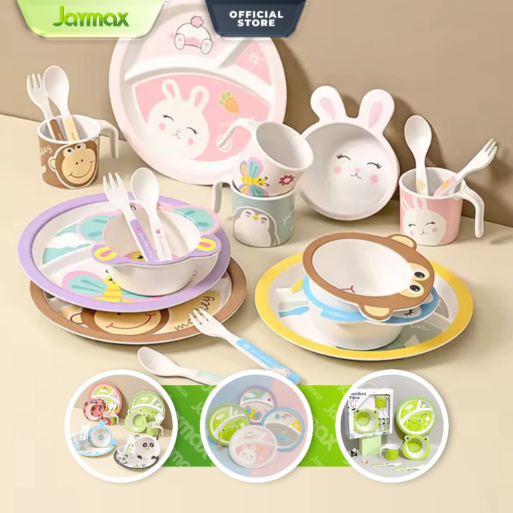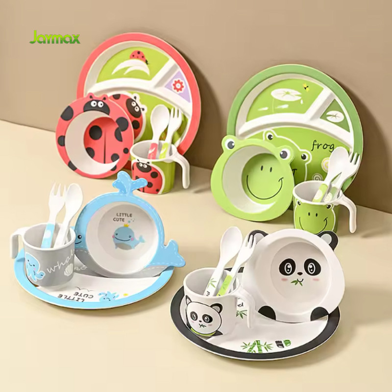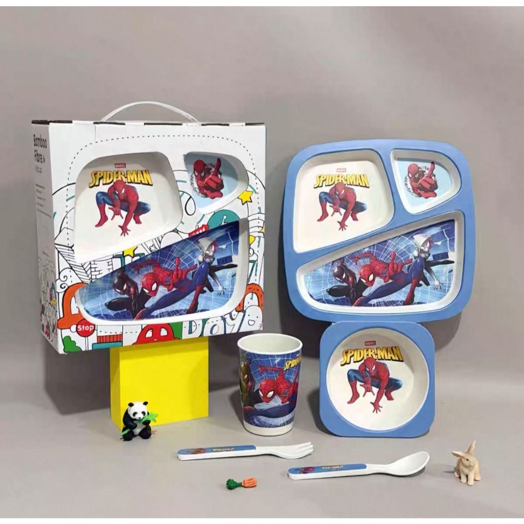 5IN1 BAMBOO FIBER BABY BOWL SET PIRING ANAK MANGKOK ANAK BAYI MOTIF KARAKTER GARPU SENDOK GELAS