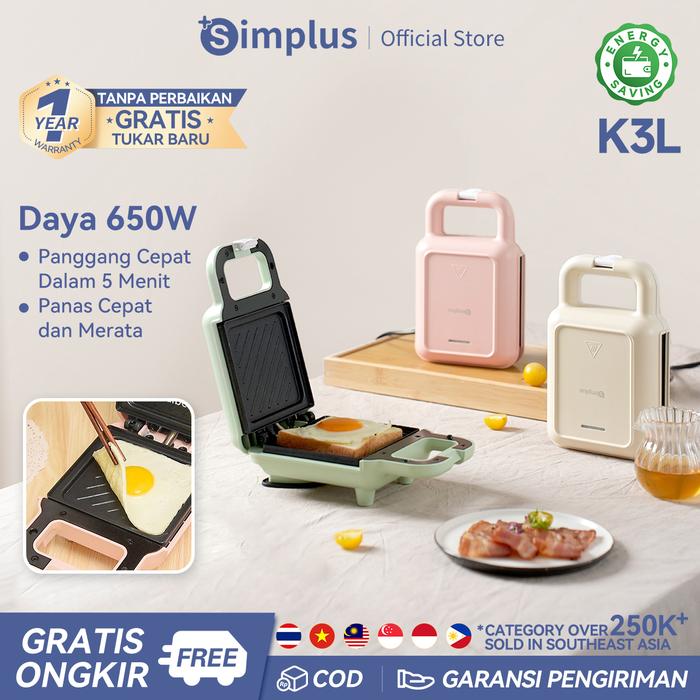 SANDWICH MAKER SIMPLUS PEMANGGANG DUA SISI SARAPAN CEPAT SAJI DALAM 5 MENIT LOW WATT 650W SMZJ001 - HIJAU