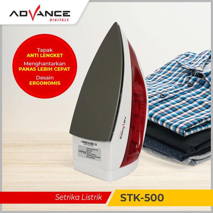 SETRIKA LISTRIK ADVANCE ANTI LENGKET STK-500 HEMAT LISTRIK 350 WATT GARANSI RESMI 1 TAHUN - RED