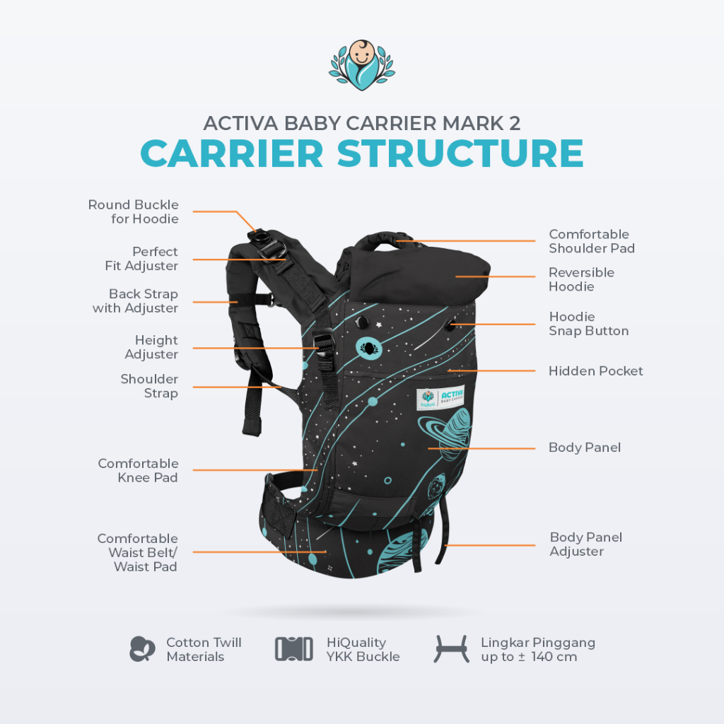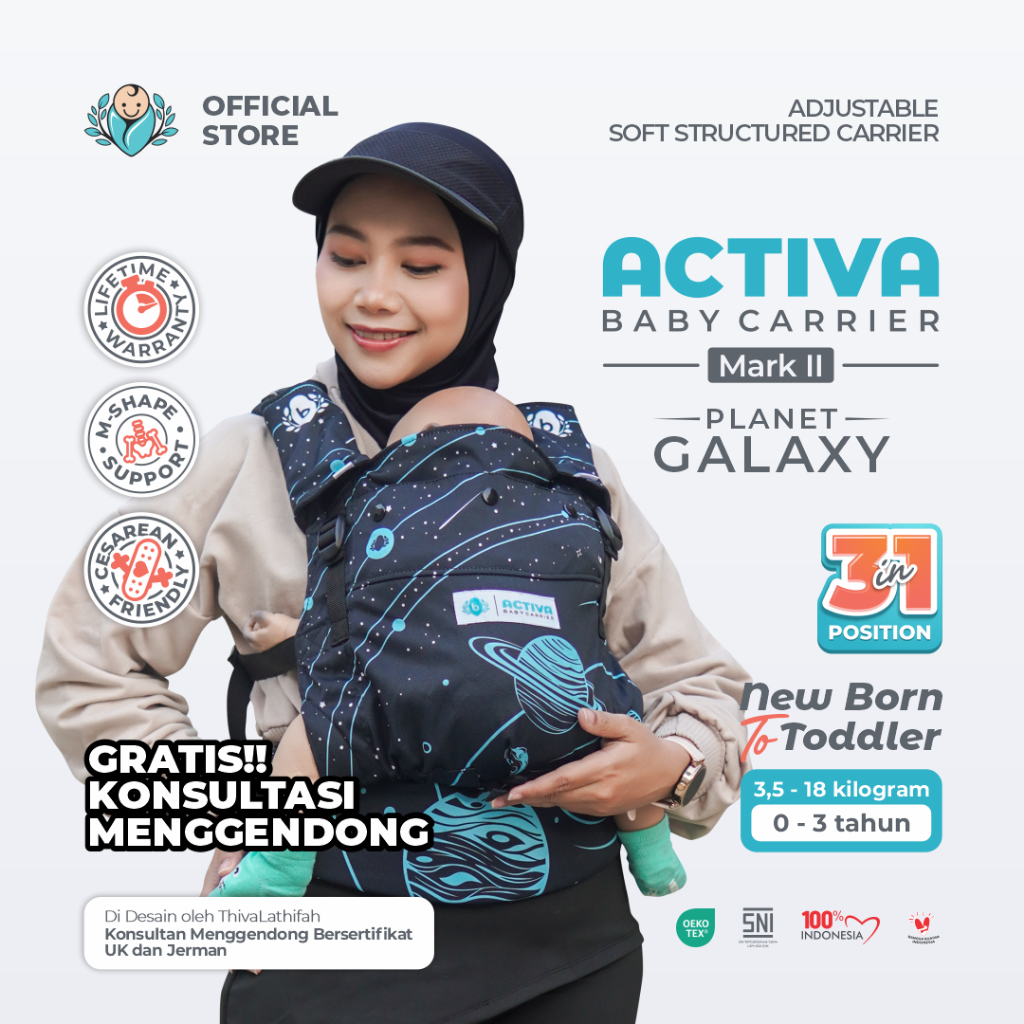 BAYIKU.ID Activa Mark 2 Planet Galaxy Gendongan Bayi M Shape SSC Adjustable Newborn Toddler 3 Thn