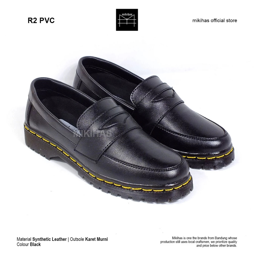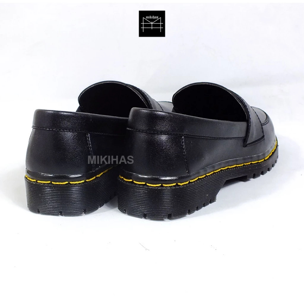 Mikihas - Sepatu Loafers Pria Formal Kulit Hitam Slip-On Tanpa Lonceng - R2