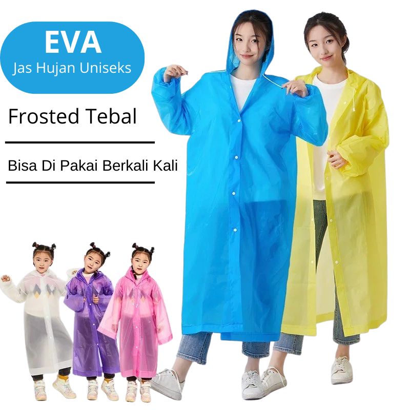 Jas Hujan EVA Korea Raincoat Unisex Dewasa / Anak Terusan Ponco Transparan