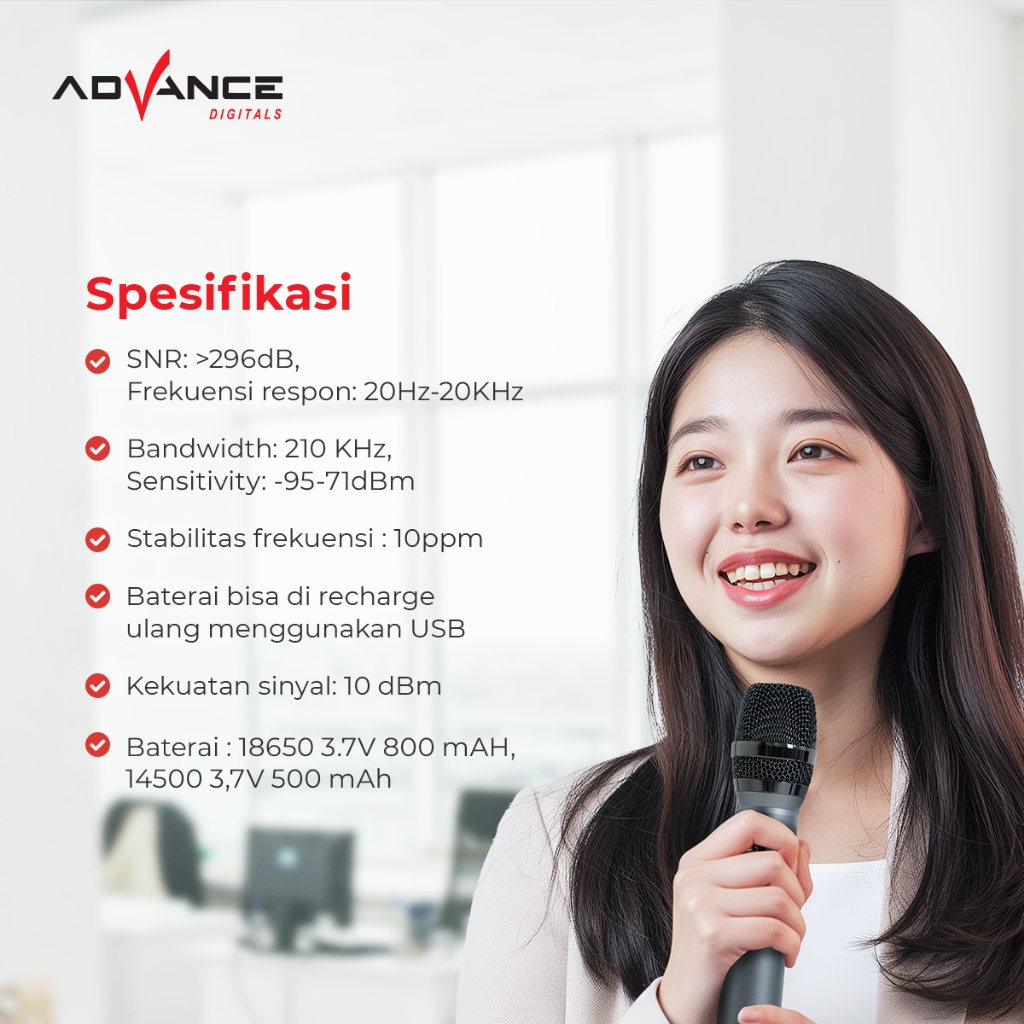 Advance Mic-208 Dual Microphone Wireless Anti Noise Garansi Resmi 1 Tahun