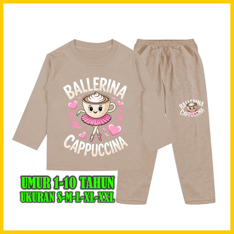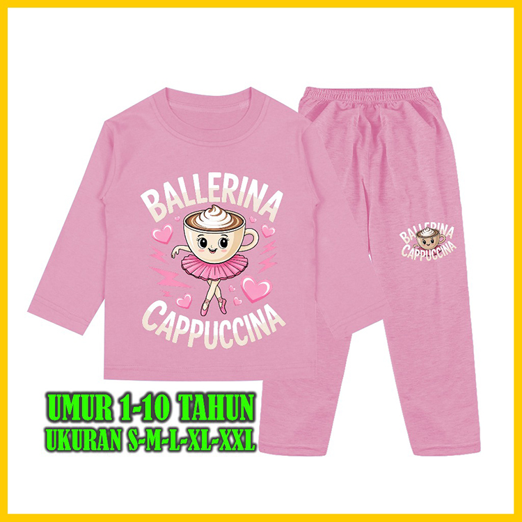 Setelan Baju Tidur Anak Gambar Ballerina Cappuccina Piyama lengan Panjang Celana Panjang 1 - 10 Tahun