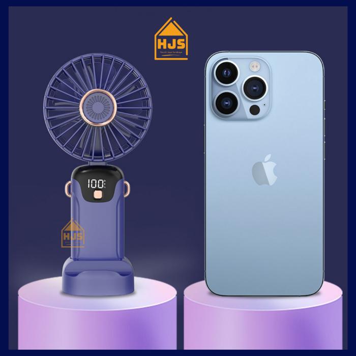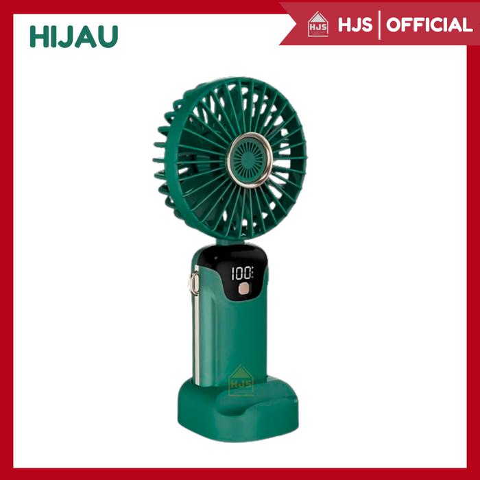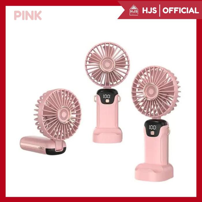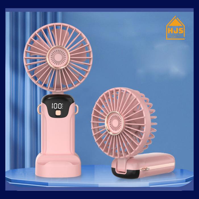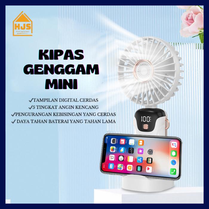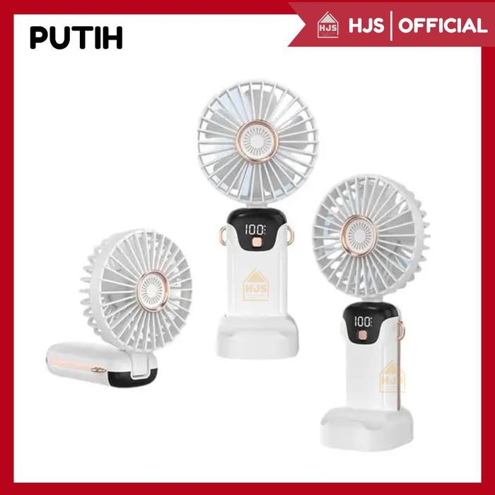 [HJS] KIPAS ANGIN MINI PORTABLE USB 15.000 MAH / KIPAS LIPAT GENGGAM MINI / LEHER 5-SPEED WIND LED DISPLAY / KIPAS ANGIN MINI / MINI FAN - PUTIH
