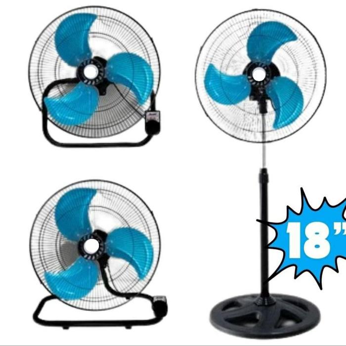 KIPAS ANGIN BESI TORNADO 3 IN 1 18 INCI BERDIRI,MEJA,DINDING/TEMBOK FAN - OMICKO BIRU