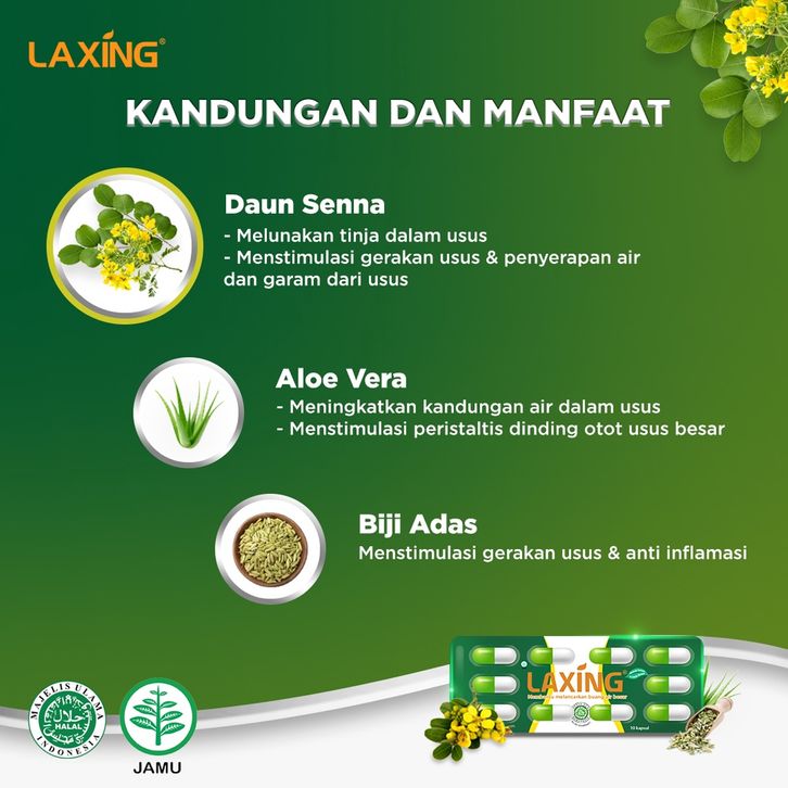 Laxing Pelancar BAB Herbal alami / Sembelit / Begah / Konstipasi 1 Box Isi 10 Blister