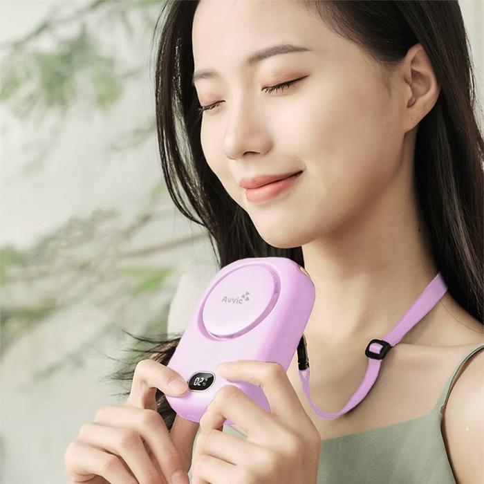 AVVIC KIPAS ANGIN MINI DQ203 PORTABLE HANGING NECK FAN MODEL GANTUNG LEHER - BEIGE+STICKER