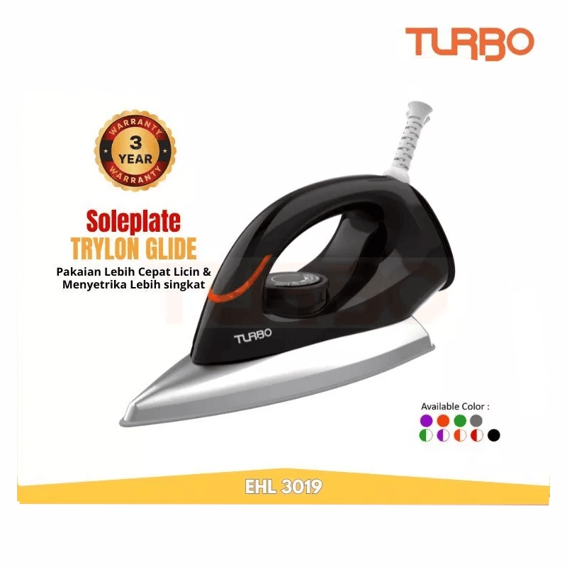 Setrika Turbo Gosokan Ehl3019 Tapak Anti Lengket Garansi Resmi
