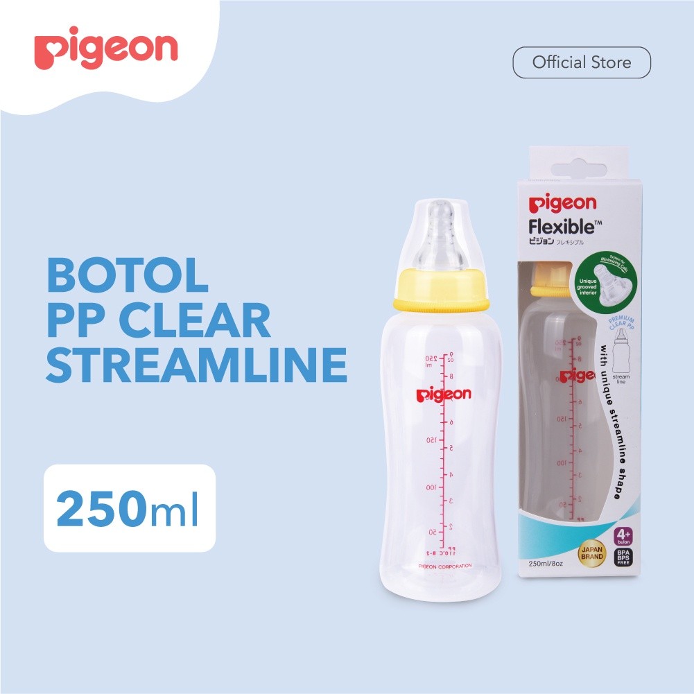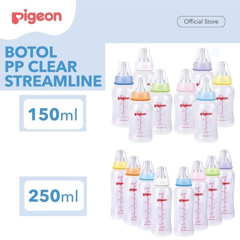 PIGEON Botol PP Clear Streamline 150ML/250ml w/S-Type Nipple | Pilih Variasi | Botol Susu Bayi | Slim Neck | Anti Kolik