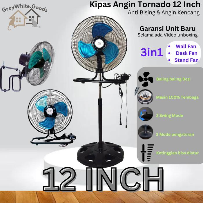 KIPAS BESI TORNADO 18 INCH 16 INCH 12 INCH 3IN1 BESAR HEMAT DAYA BALING FAN - 12 INCH 2IN1
