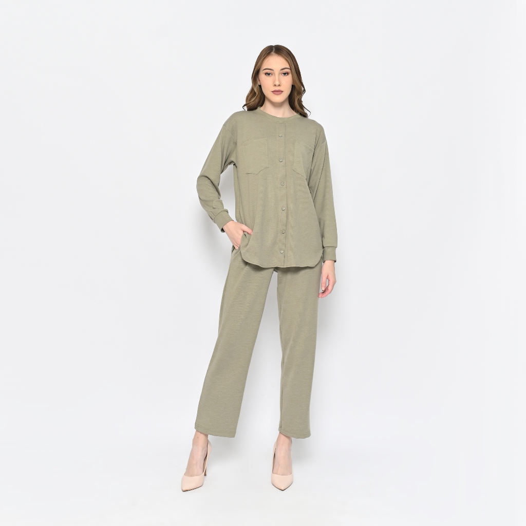 QUEENTIN One-Set Crewneck Wanita 0232 Stretch Snowy Rib Knit Polos Lengan Panjang