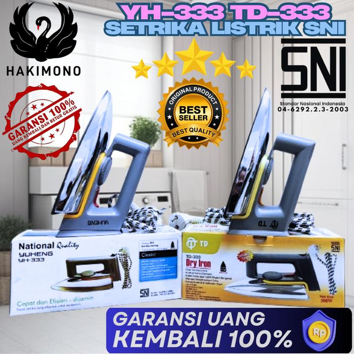 SNI TD-333 YH-333 SETRIKA LISTRIK GOSOKAN PAKAIAN SETRIKA PAKAIAN DRY IRON ANTI LENGKET TERJAMIN SNI DILENGKAPI THERMOSTAT PENJAGA SUHU (OTOMATIS NYALA/MATI)
