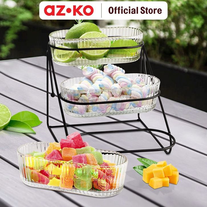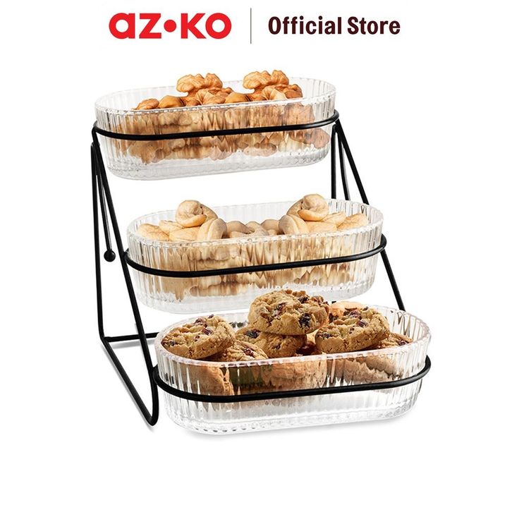 AZKO Delicia Mangkuk Saji 3 Tingkat - Hitam Set Mangkok Makanan Dengan Rak Wadah Hidangan Serving Bowl Dan Rak Perlengk