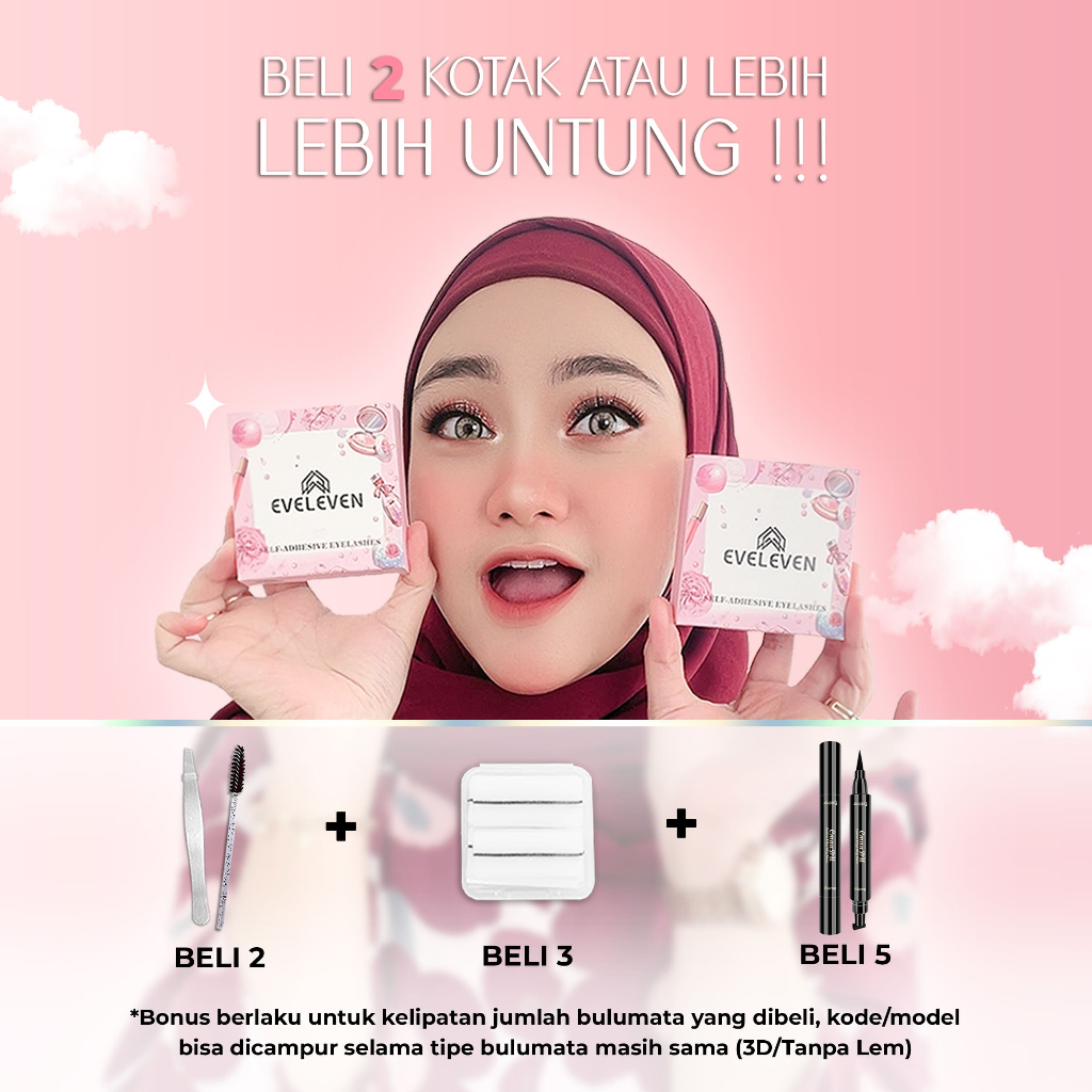 EVELEVEN 3D-A04 Bulumata Palsu Pendek Lentik Tanpa Lem Ukuran 9-10mm - Eyelash Extension Langsung Tempel Sepasang Bulumata False Lashes