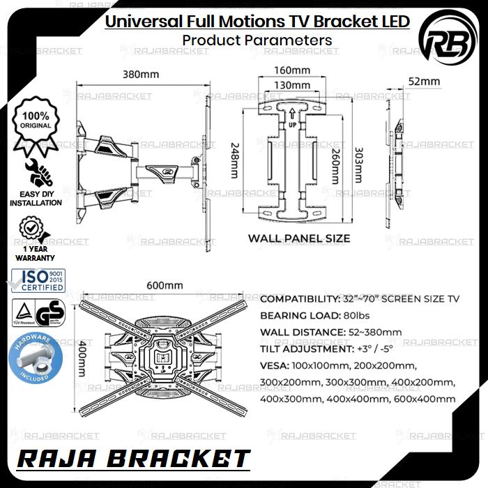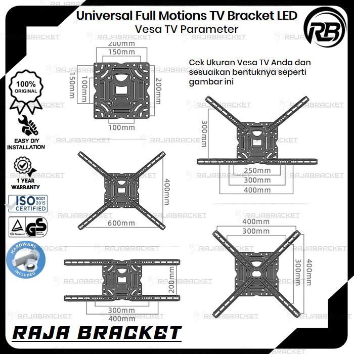 BRAKET BRACKET TV 32 40 42 43 50 55 60 65 70 75 INCH FULL MOTIONS UNIVERSAL TV LCD LED