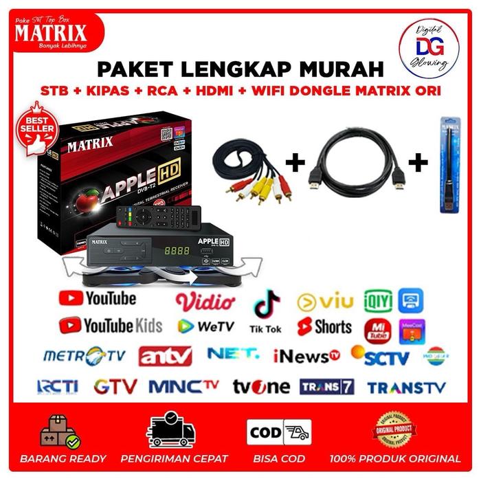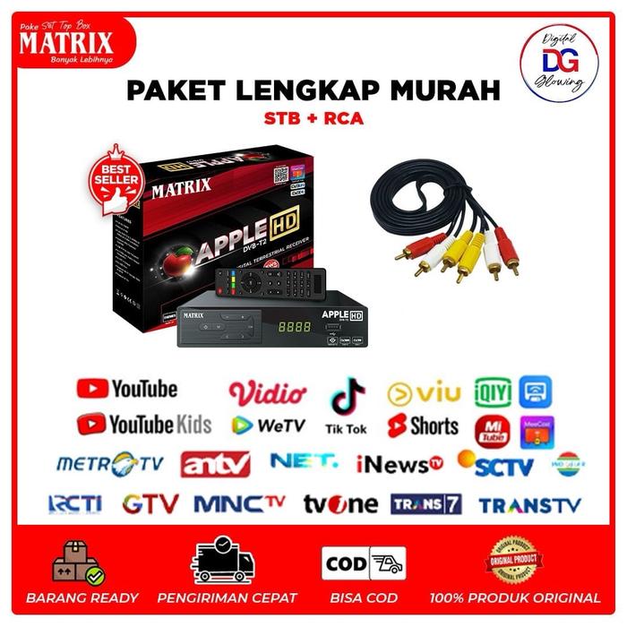 SET T0P BOX TV DIGITAL MATRIX APPLE MERAH SETT0PBOX MURAH - STB MERAH + RCA