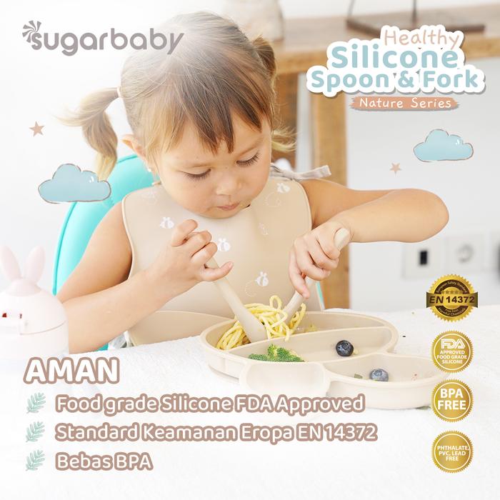 SUGARBABY HEALTHY SILICONE SPOON & FORK (NATURE SERIES) - SUN (KUNING MUSTARD)