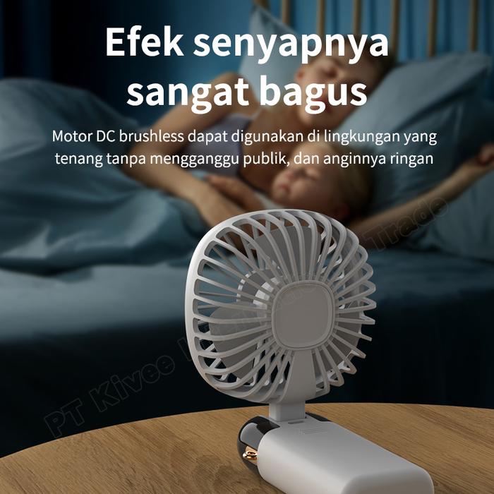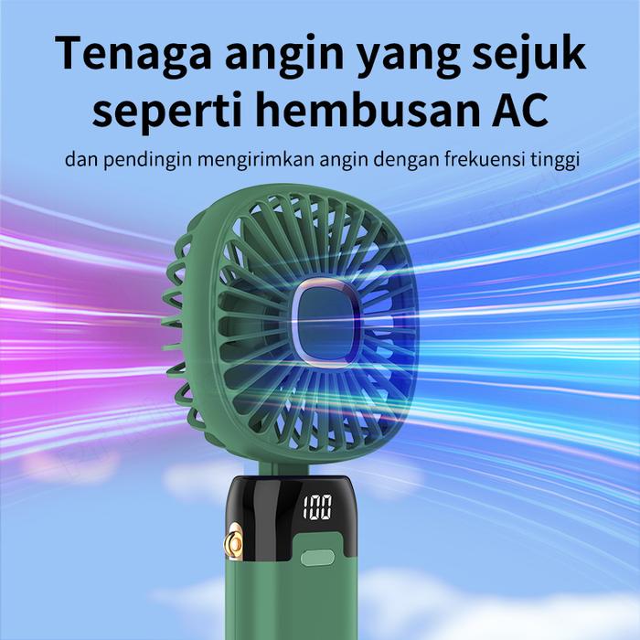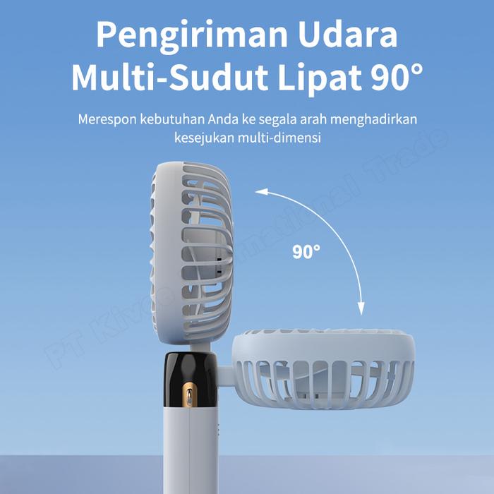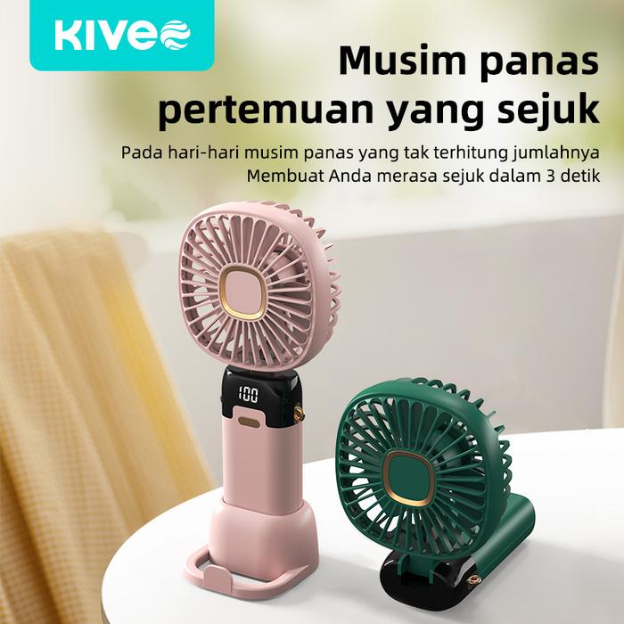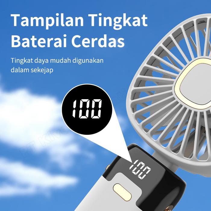 KIVEE KIPAS ANGIN MINI PORTABLE 1200MAH LCD 5-SPEED DAPAT DILIPAT 90° 3-4 MERAH - WHITE