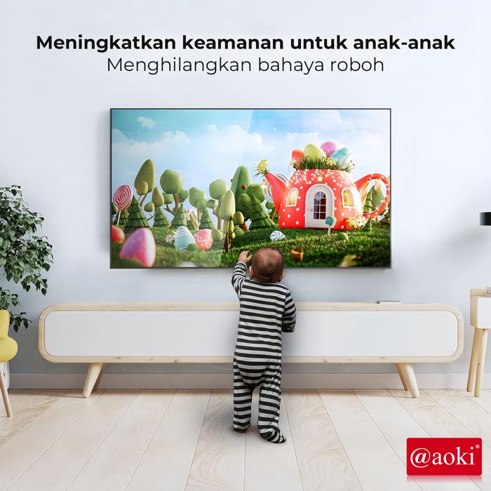 AOKI BRACKET TV FULL MOTION SWIVEL ARM UNTUK TELEVISI 19-60 INCI, SMART TV, LED LCD TV, MONITOR LAYAR DENGAN KAPASITAS HINGGA 30 KG KARBON KABEL - 19-50INCH(BERGERAK)