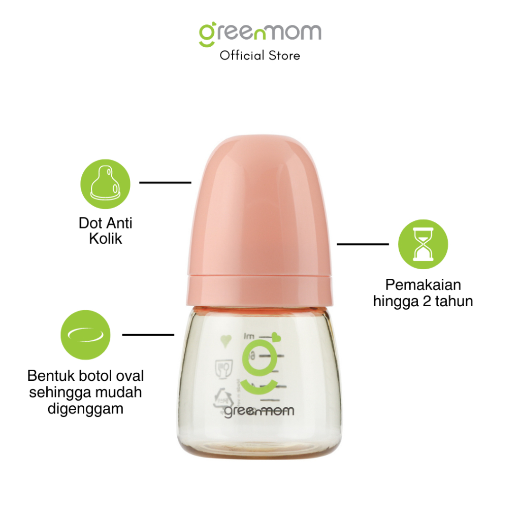 Greenmom PPSU Slim 60ml Coral Rose / Botol Paling Aman - Bebas Mikroplastik / Anti-kolik / Brand Korea