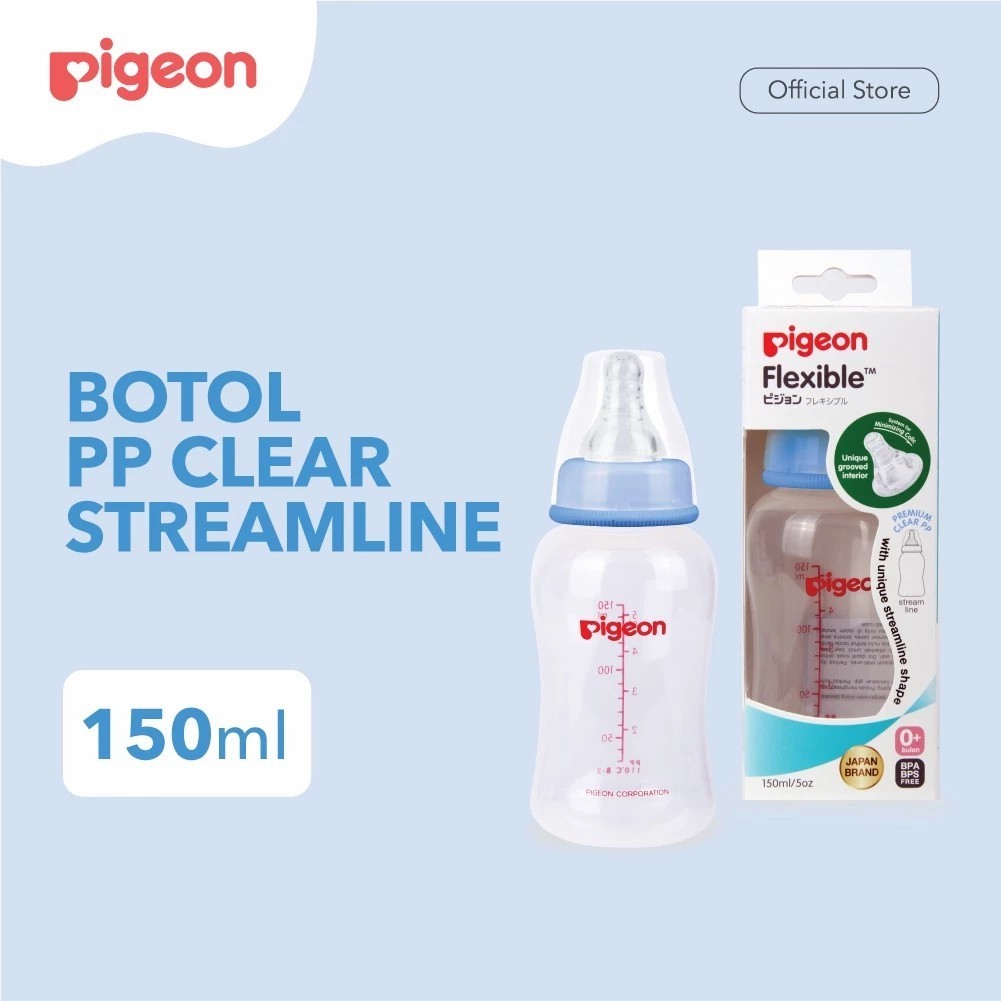 PIGEON Botol PP Clear Streamline 150ML/250ml w/S-Type Nipple | Pilih Variasi | Botol Susu Bayi | Slim Neck | Anti Kolik