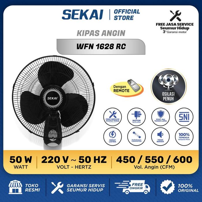 KIPAS ANGIN DINDING REMOTE SEKAI WFN 1628 WFN1628