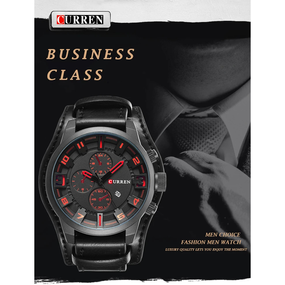 Jam Tangan Pria Kulit Anti Air Original Curren Dengan Tanggal Water Resistence Arloji Cowok Analog Chronograph Fashion M