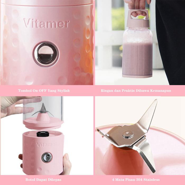ORIGINAL VITAMER RECHARGEABLE PORTABLE JUICER/BLENDER 500ML - MERAH MUDA