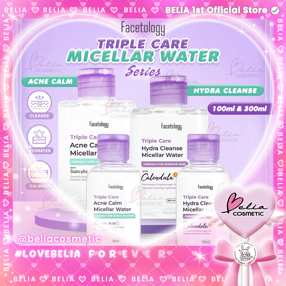 ❤ BELIA ❤ FACETOLOGY Triple Care Micellar Water Series | Acne Calm Micellar Water | Hydra Cleanse Micellar Water | Salicylic Acid | Calendula